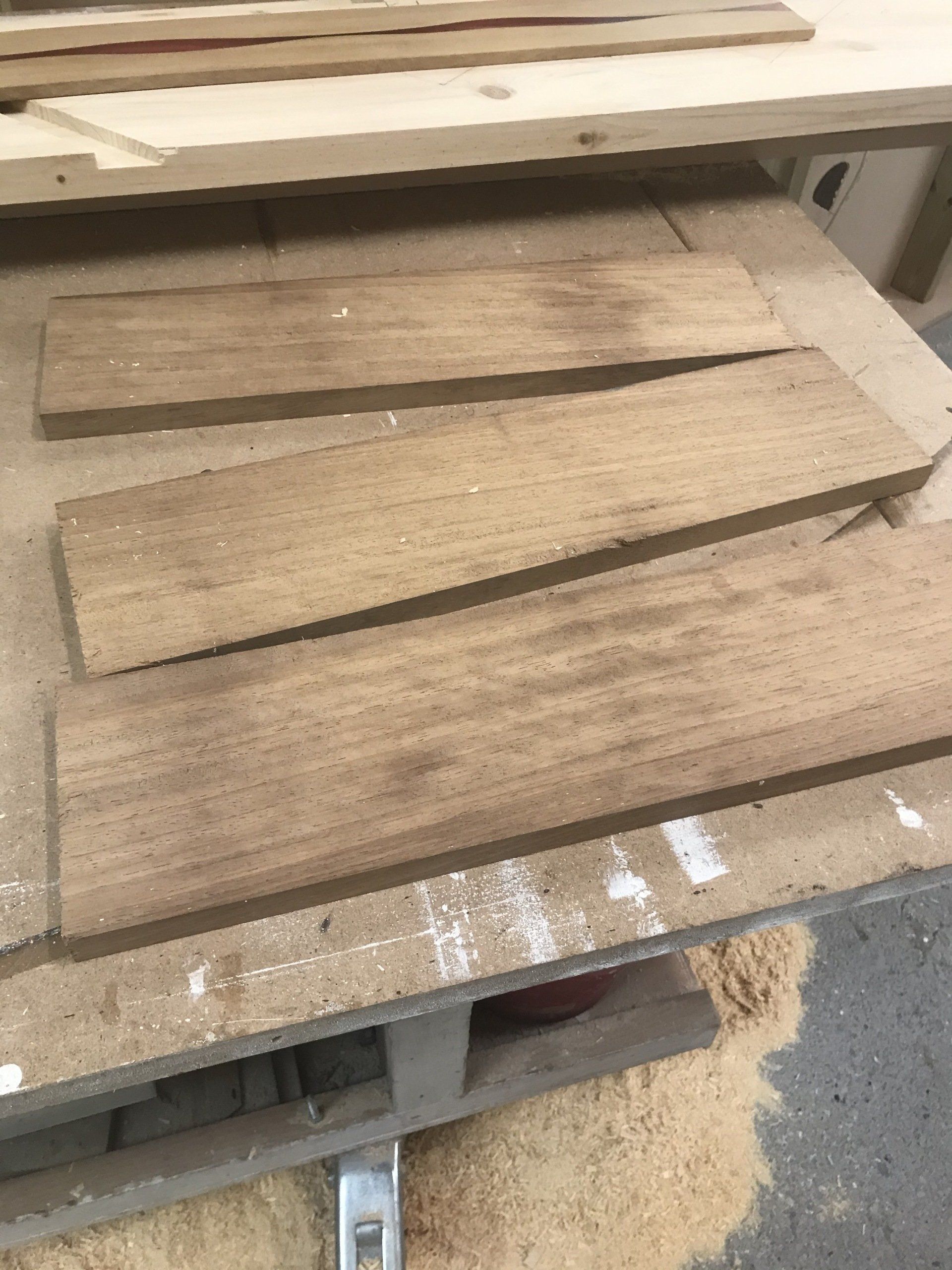 First resin project, iroka shelf with red resin